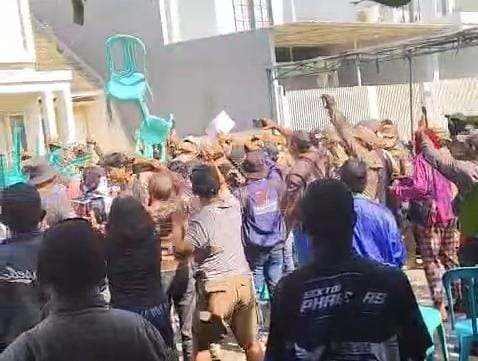 Situasi di lokasi eksekusi pagar pembatas, nampak warga melempari petugas satpol PP dengan kursi. Kericuhan tersebut diwarnai jerit histeris para ibu ibu. Warga juga menuntut pertanggungjawaban atas biaya pengobatan bagi sejumlah ibu-ibu yang terjatuh dan terinjak saat terjadi aksi dorong-dorongan.