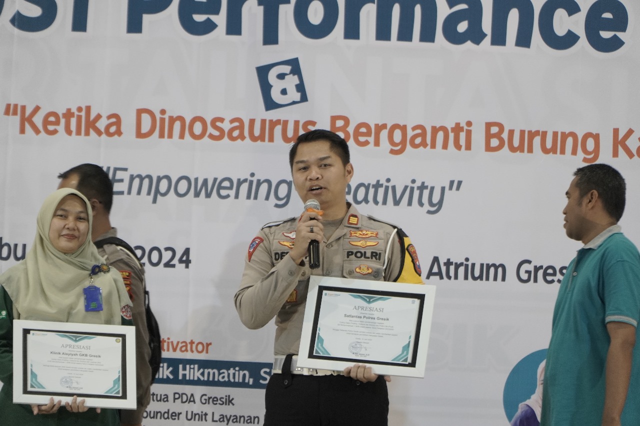 KabarBaik.co – Kasat Lantas Polres Gresik, AKP Derie Fradesca menerima penghargaan Networking dari Mugeb School di Atrium Gress Mall Lantai 2 GKB Gresik, baru-baru ini.