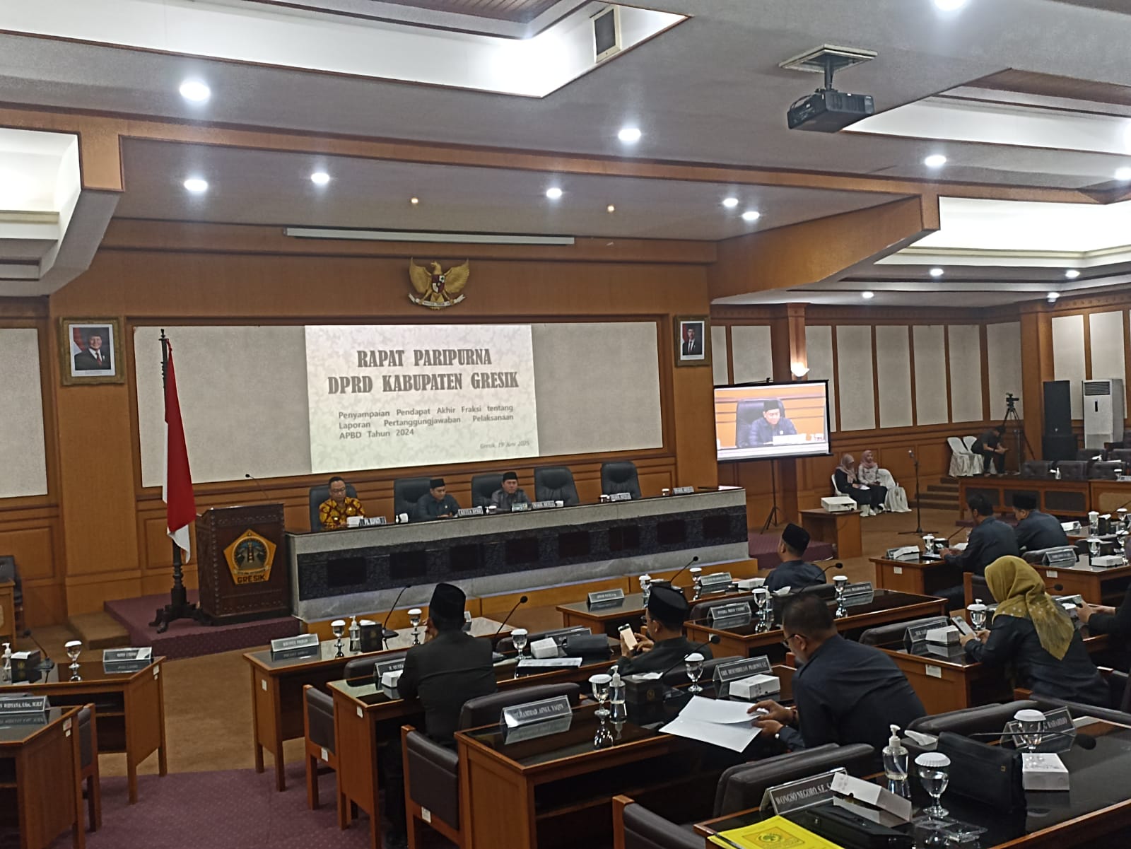 KabarBaik.co — Seluruh fraksi DPRD Gresik menyampaikan pandangan akhir terhadap laporan pertanggungjawaban pelaksanaan Anggaran Pendapatan dan Belanja Daerah (APBD) Tahun Anggaran 2024 secara tertulis dalam rapat paripurna terbuka yang digelar Kamis (19/6), di ruang paripurna DPRD Gresik.
