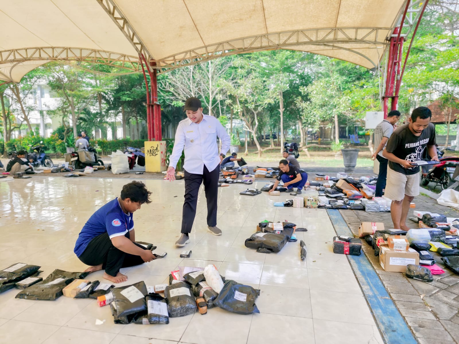 KabarBaik.co – Bupati Pasuruan Rusdi Sutejo (Mas Rusdi) melakukan inspeksi mendadak (sidak) ke Pendopo Bangil Kota Bordir (Bang Kodir) di Kelurahan Pogar, Kecamatan Bangil, Kabupaten Pasuruan. Tempat tersebut digunakan sebagai lokasi sortir paket oleh sejumlah kurir online shop.