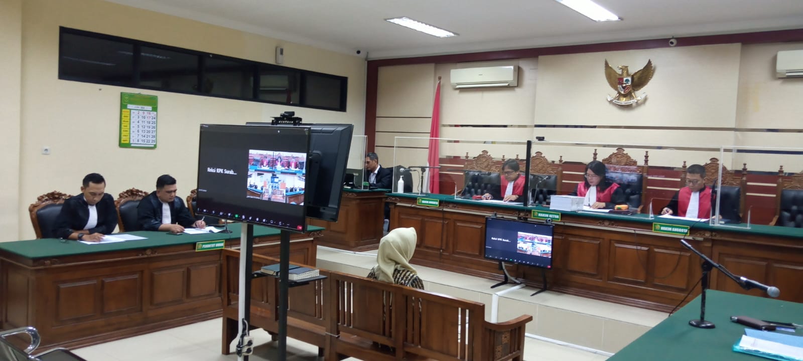 Suasana jalannya sidang Siska Wati, terdakwa kasus dugaan pemotongan insentif pegawai BPPD Sidoarjo.