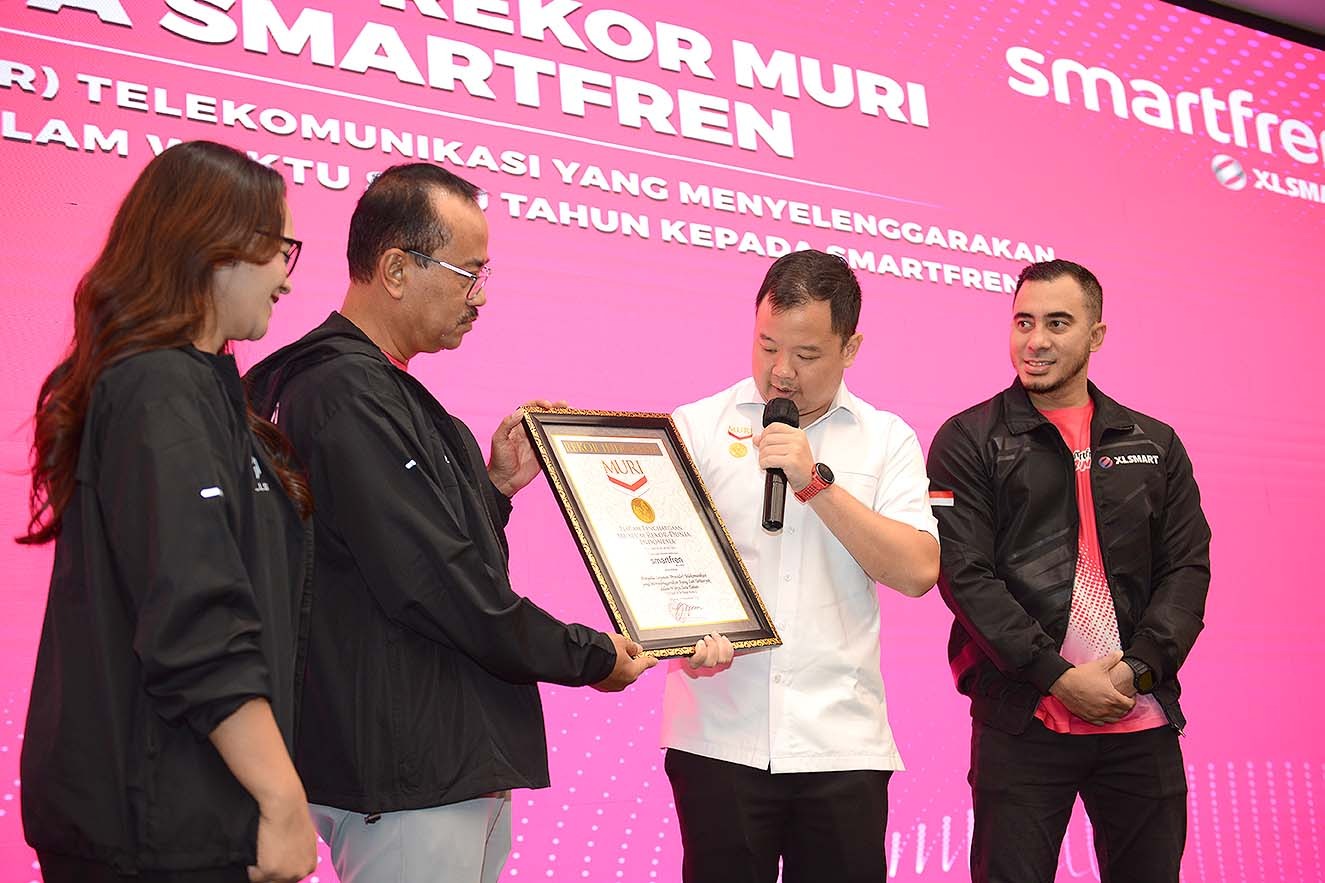 Penyerahan penghargaan dilakukan di kantor XLSMART Tower, Jakarta oleh Wakil Direktur Utama MURI, Osmar Semesta Susilo dan diterima oleh Chief Marketing Officer SMARTFREN XLSMART, Sukaca Purwokardjono, Senin (3/11).