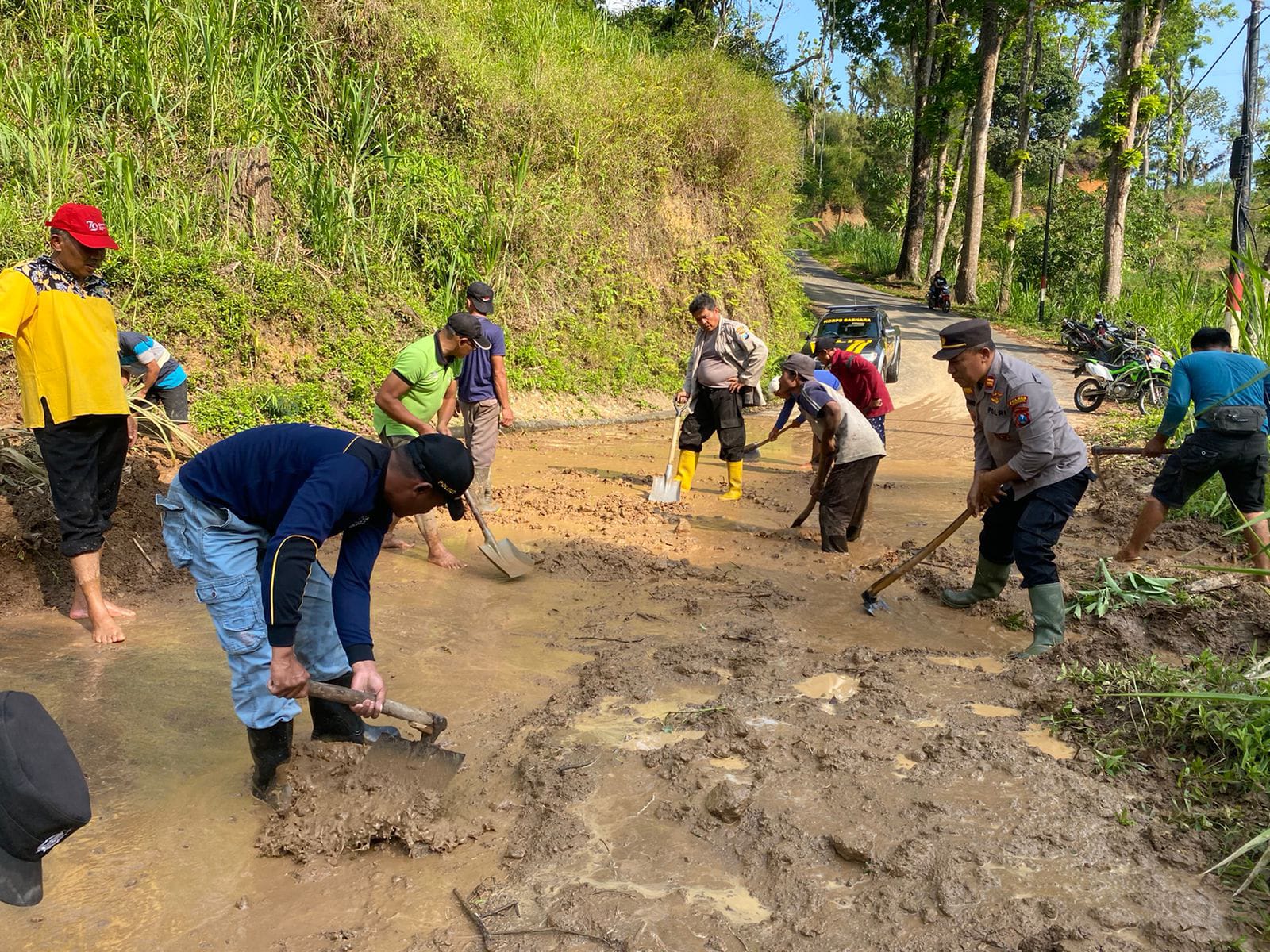 Mendapat laporan tersebut, pihak Kepolisian bersama anggota TNI, stakeholder terkait, dan warga sekitar bergerak cepat untuk melakukan evakuasi serta membersihkan material longsor yang menutupi jalan. Pembersihan dilakukan secara manual dengan peralatan seperti cangkul dan sekop.