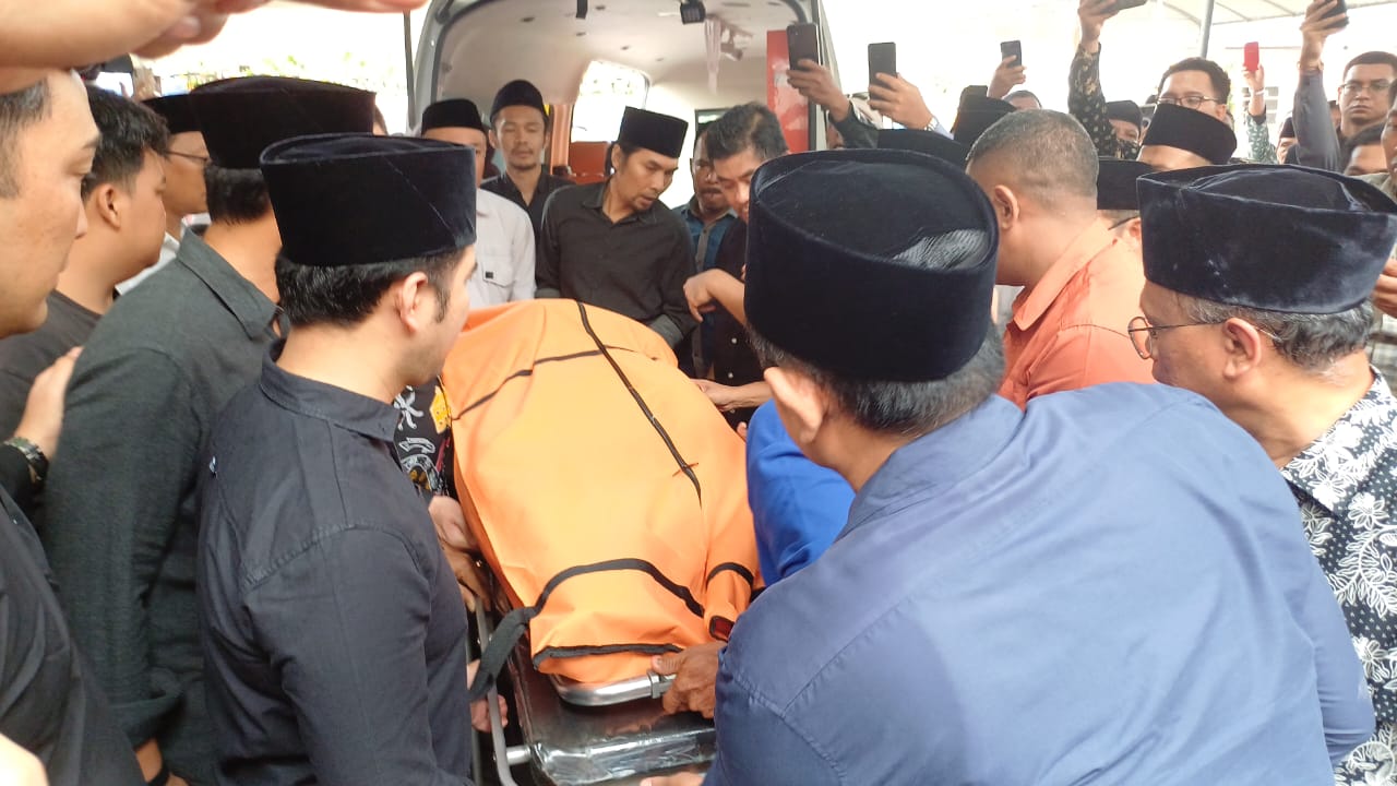 Setibanya di rumah duka pukul 16.20 WIB, suasana haru tak terbendung. Tangisan keluarga dan kerabat yang menunggu sejak siang semakin pecah ketika peti jenazah diturunkan.