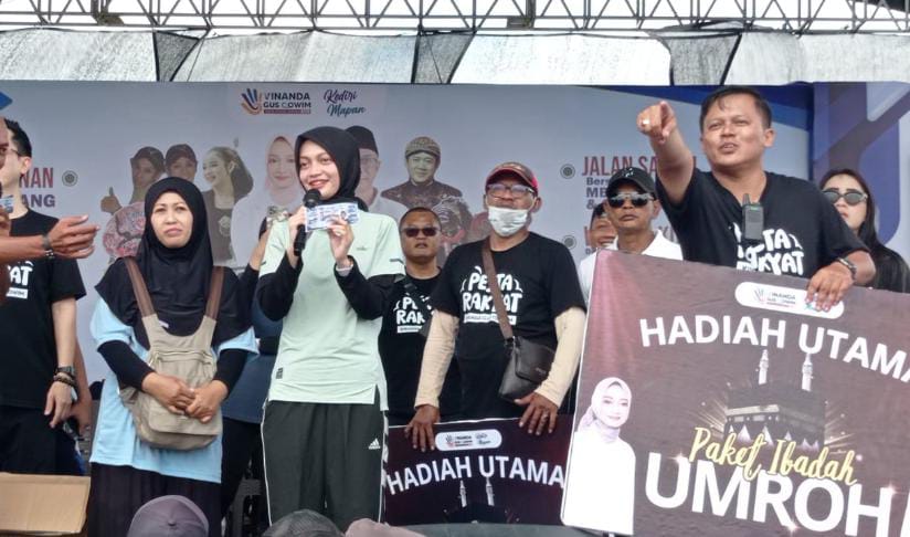 KabarBaik.co – Wali Kota dan Wakil Wali Kota Kediri terpilih Vinanda Prameswati-Qowimudin menggelar pesta rakyat sebagai bentuk tasyakuran dengan acara jalan santai. Ribuan masyarakat tumplek blek di Omah Sawah Burengan, Sabtu (18/1).
