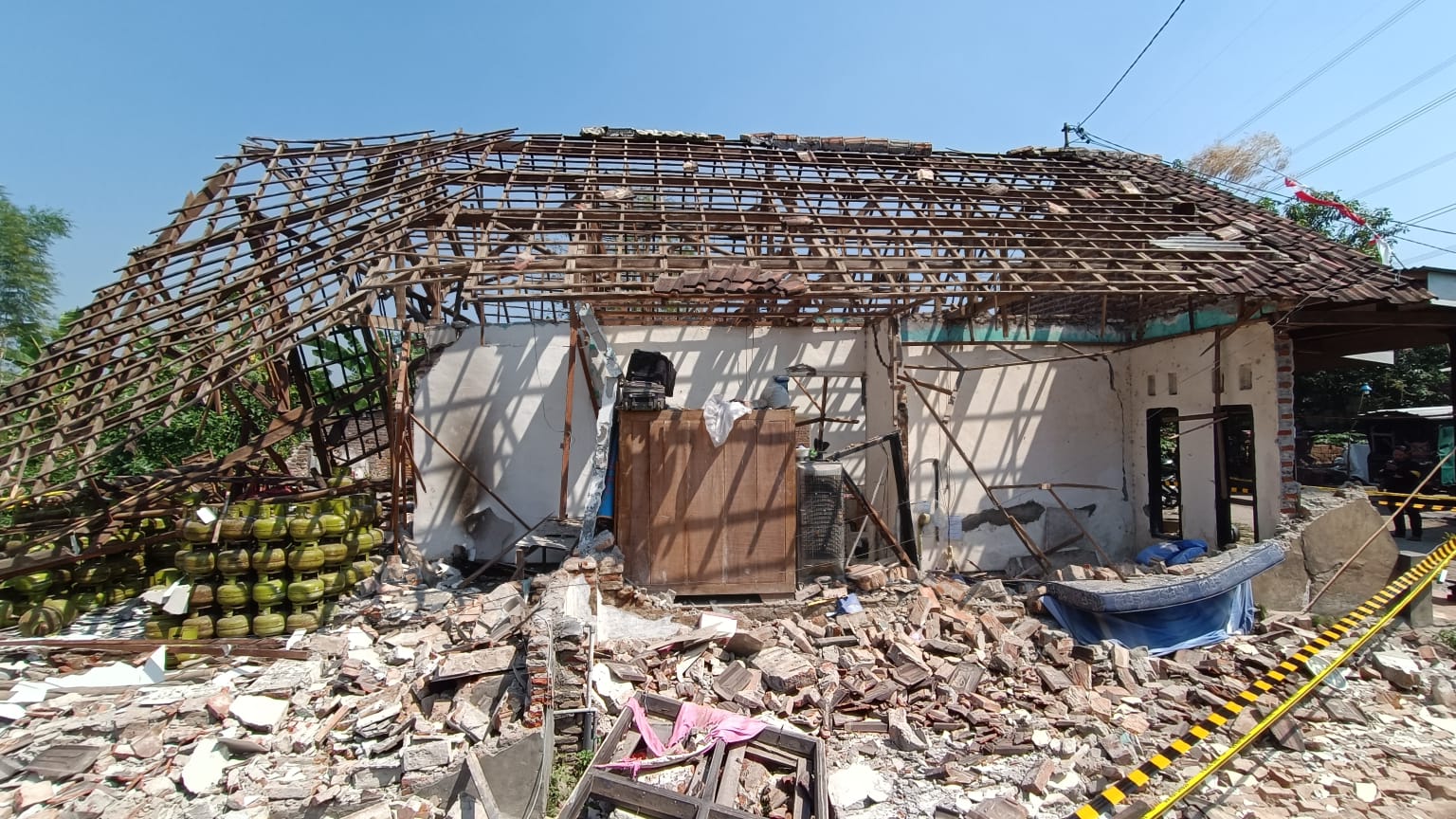 Kondisi rumah yang terlihat hancur usai terjadi ledakan. (Yudha)