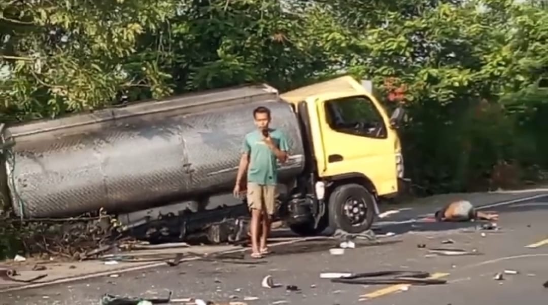 “Sesampainya di TKP mobil yang dikendarainya melaju ke lajur sebelah kanan,” jelas Septian. Pada saat bersamaan dari arah berlawanan atau dari timur ke barat, melaju truk tangki air Mitsubishi nomor polisi AE 8704 KE yang dikemudikan Renal Bagus Dwi Prastyo.