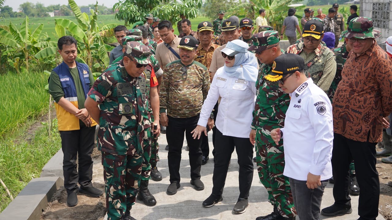 Peninjauan dimulai dengan perjalanan menggunakan mobil Willys menuju sejumlah titik sasaran fisik TMMD, di antaranya pembangunan Jalan Usaha Tani (JUT), Tanggul Penahan Tanah (TPT), serta rehabilitasi SDN Sumbertanggul II.