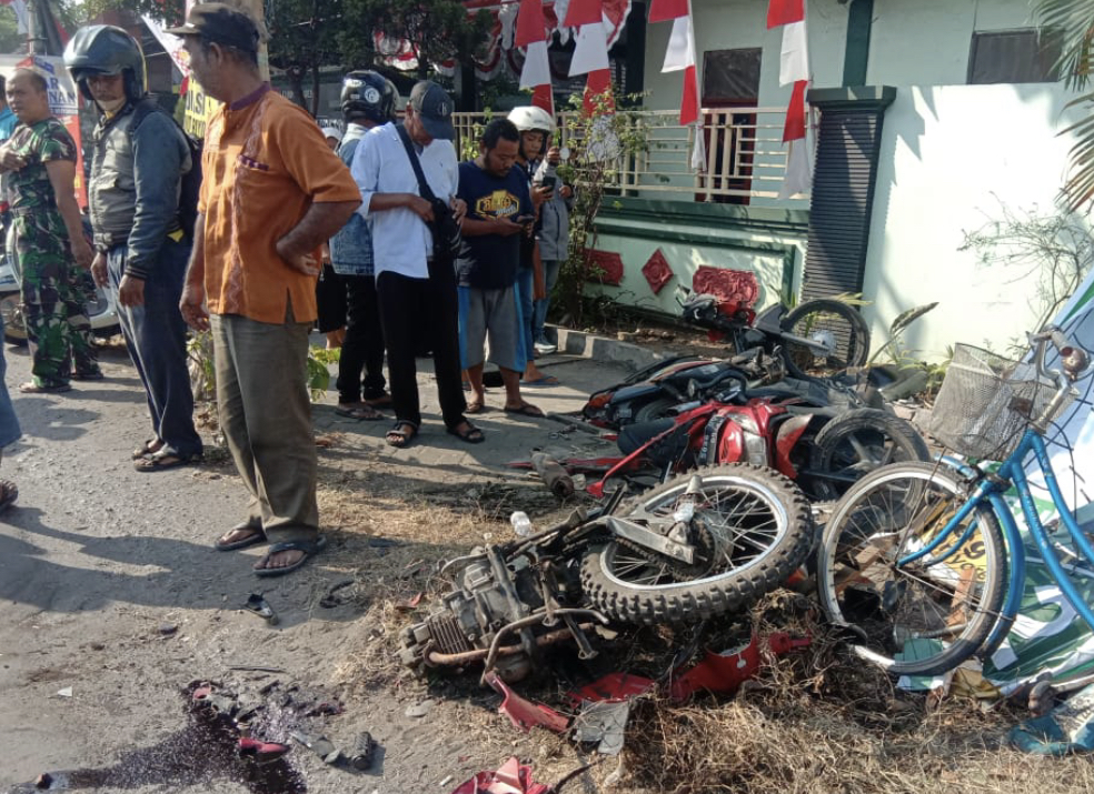 Sepeda motor yang rusak itu yakni Honda Beat warna merah W 5896 DY milik Devi Triamaulita (40), Honda Supra M 2690 GK milik Satriyo Wahyu Sukmono (45) dan Suzuki Shogun EA 3482 B milik Suraidi (39). Ketiga kendaraan mengalami kerusakan. Pemilik tidak di lokasi saat kejadian.(kb04)