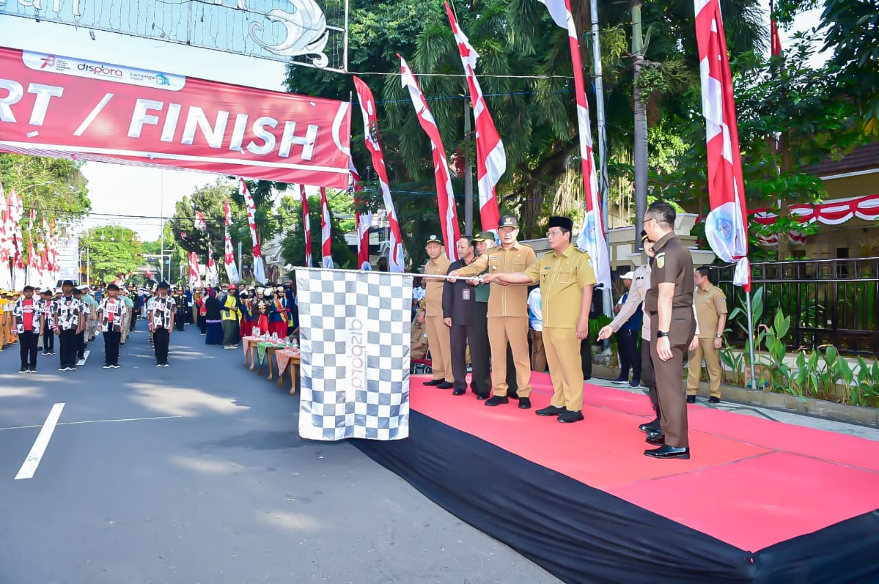 LAMONGAN – Bupati Lamongan, Yuhronur Efendi berangkatkan lomba gerak jalan tingkat SD atau MI se Kecamatan Lamongan dengan mengambil start di depan Pendopo Lokatantra Kabupaten Lamongan, Selasa (22/8/2023).