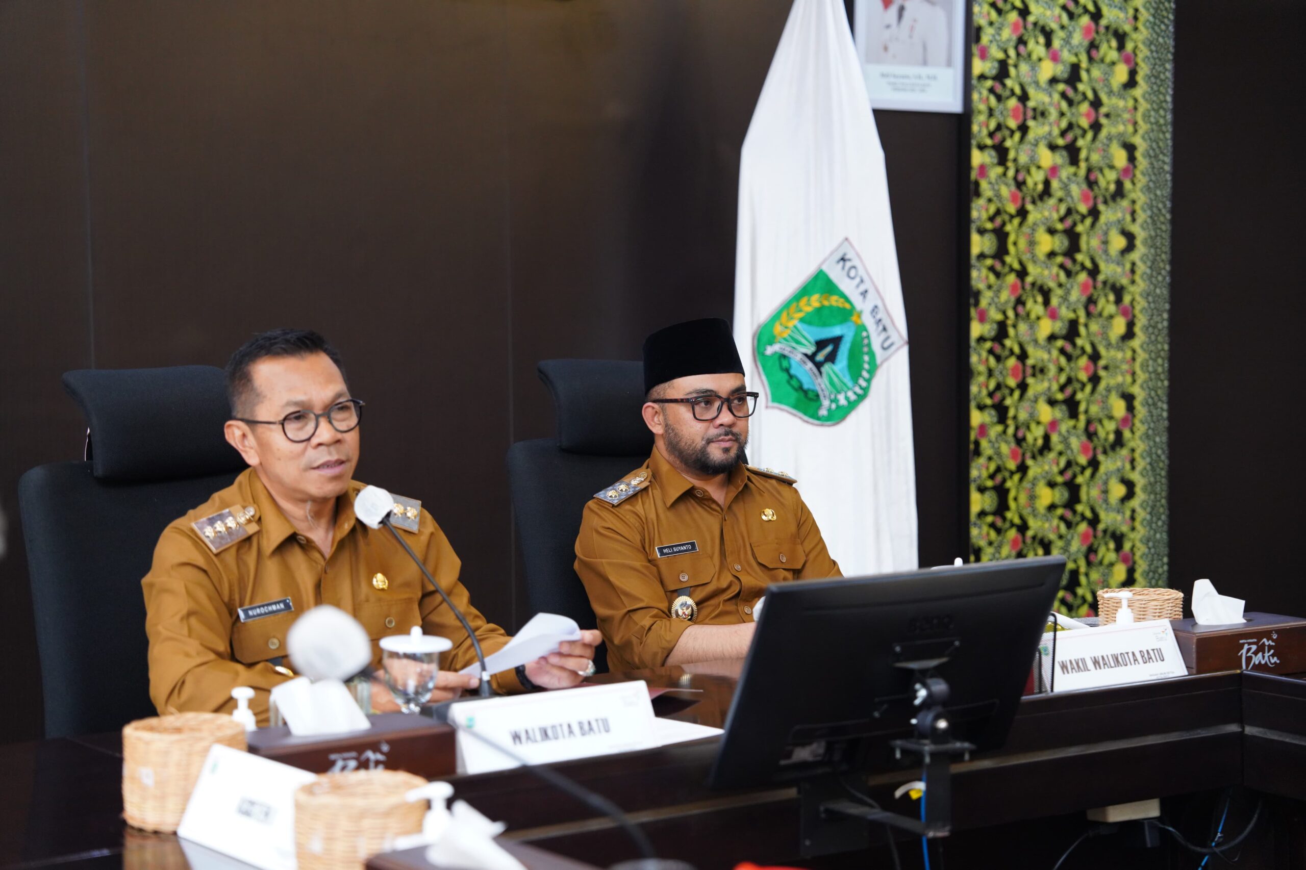 KabarBaik.co – Wali Kota Batu, Nurochman, bersama Wakil Wali Kota Batu, Heli Suyanto menyaksikan langsung penandatanganan perjanjian kerja bagi tenaga jasa layanan medis, tenaga kesehatan, dan tenaga pendukung puskesmas di Kota Batu. Kegiatan ini digelar di Ruang Rapat Utama Balai Kota Among Tani.