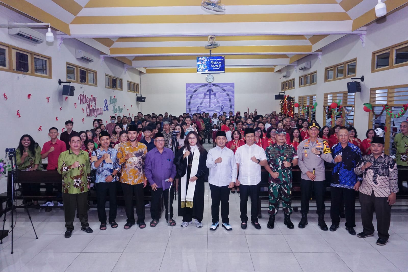 “Pada malam hari ini, Forkopimda Kota Pasuruan kembali hadir membersamai saudara-saudara kita dalam perayaan Natal. Kami bersyukur dan bangga, karena ibadah Natal dapat terlaksana dengan aman dan penuh kedamaian,” ujarnya.