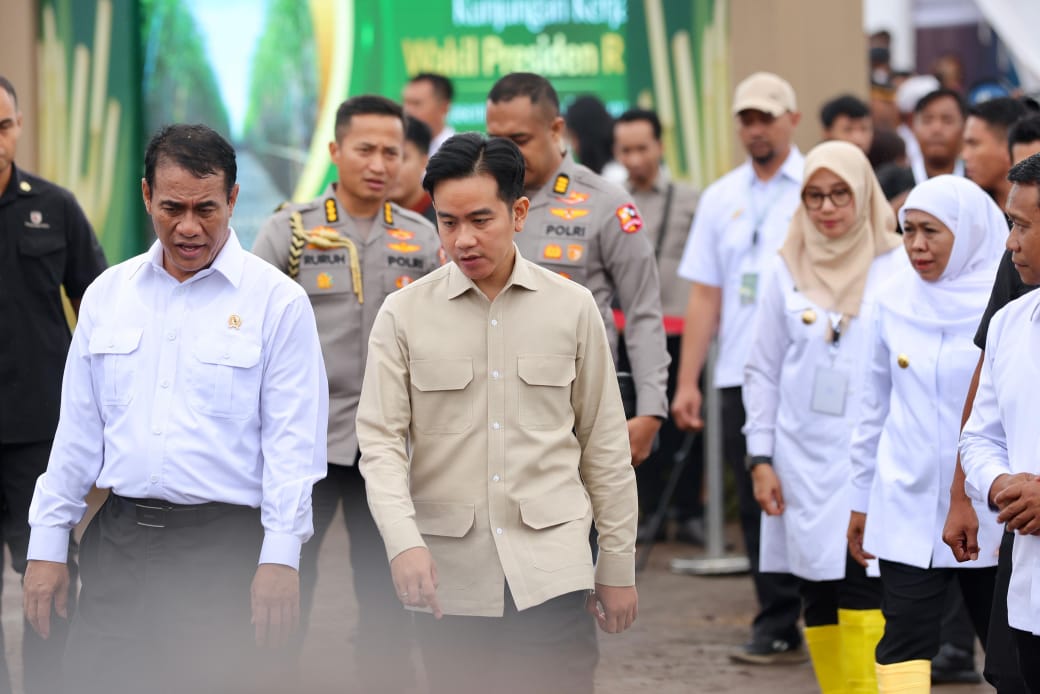 Gibran saat berjalan menuju lokasi panen tebu di IGG Glenmore, Banyuwangi