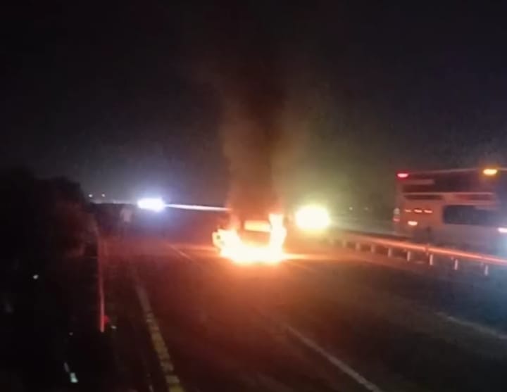 Setelah tabrakan, mobil Xenia langsung terbakar hebat di lajur kanan KM 710+600A. Api berkobar disertai asap hitam pekat yang membumbung ke udara. Dalam video yang beredar, tampak kobaran api melalap hampir seluruh bodi mobil.
